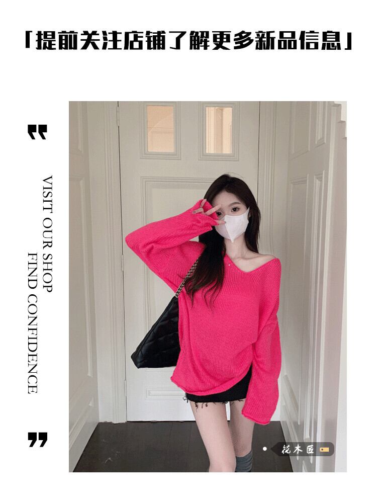 ルーズVネックプルオーバー セーター オータムスリットニットトップス ロング 秋物 10/5 秋冬 オータム ウインター ナチュラル mi4632366366935