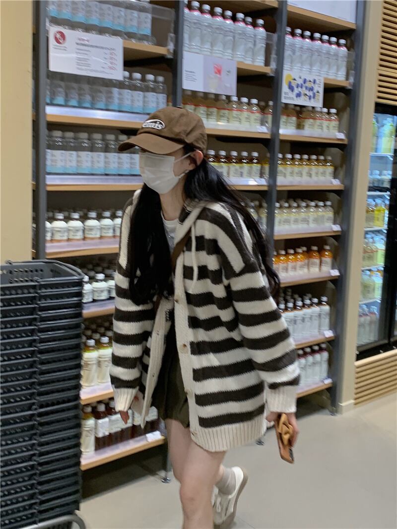 スタイルストライプギャザーフードセーター コート オータムルーズニットトップス 秋物 10/5 秋冬 オータム ウインター ナチュラル mi4644617573310