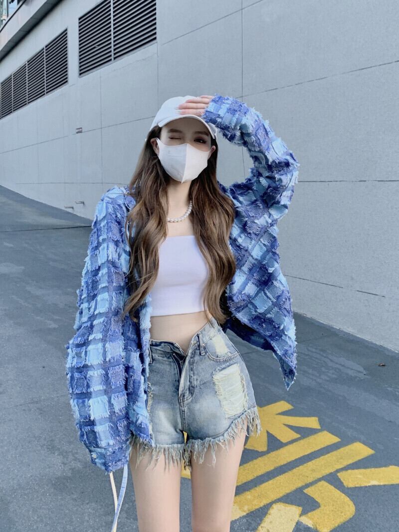 ブルーシャツ ジャケット オータム格子柄トップス 秋物 10/5 秋冬 オータム ウインター ナチュラル mi46439096888
