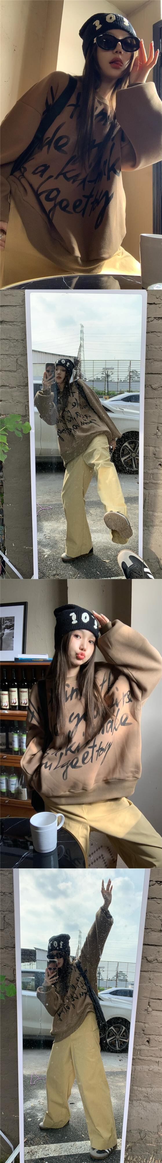スタンダードルーズラウンドネックプルオーバー セーター オータムトップス ロング レトロ 秋物 Oネック 10/5 秋冬 オータム ウインター ナチュラル mi4635426161419