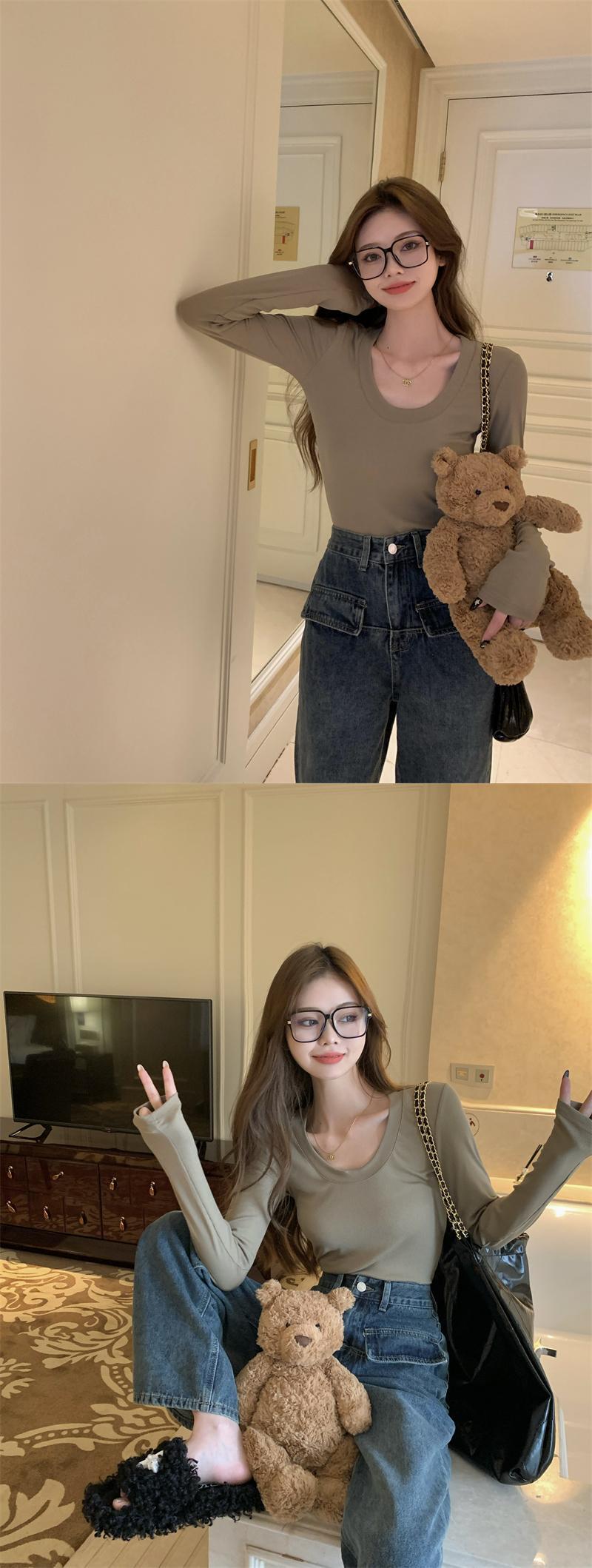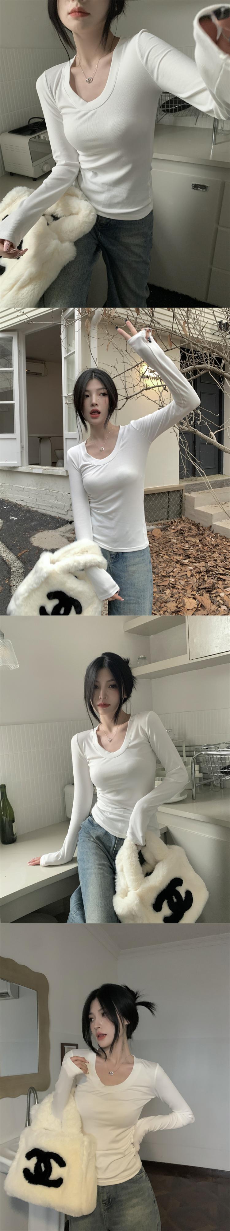 Tシャツ オータムソリッド カラースリムフィットトップス ロング 秋物 ソリッドカラー 10/5 秋冬 オータム ウインター ナチュラル mi4616612383811