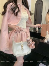 色:ピンクのジャケット一枚,ブラックジャケットワンピース,ピンクショートスカートワンピース,ブラックショートスカートワンピース