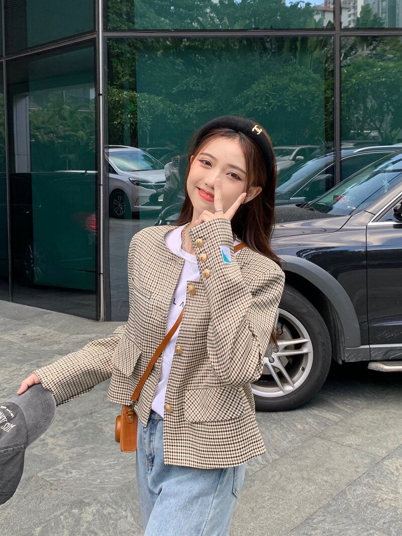 格子柄コート オータム薄手ショートトップス 秋物 10/5 秋冬 オータム ウインター ナチュラル mi4657837868222
