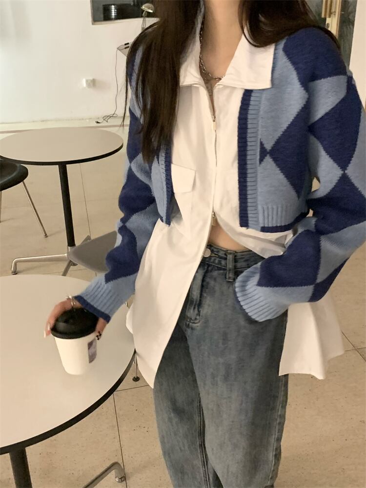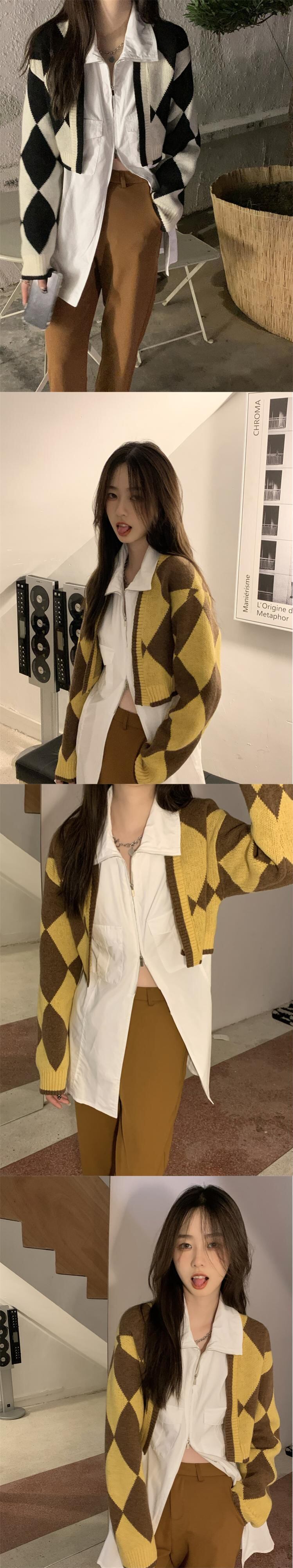 色:ブルーダイヤモンドセーター,イエローダイヤモンドセーター,ブラックダイヤモンドセーター,白いシャツのワンピース