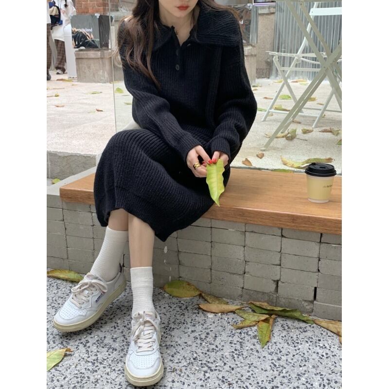 オータムウィンタースタイルカラーセーター ドレス ルーズスカート ロング 秋物 冬物 10/5 秋冬 オータム ウインター ナチュラル mi4621727196577