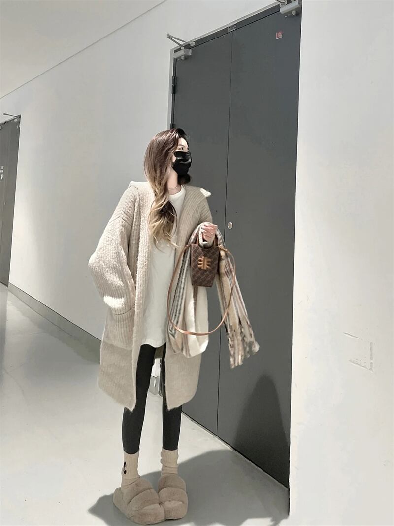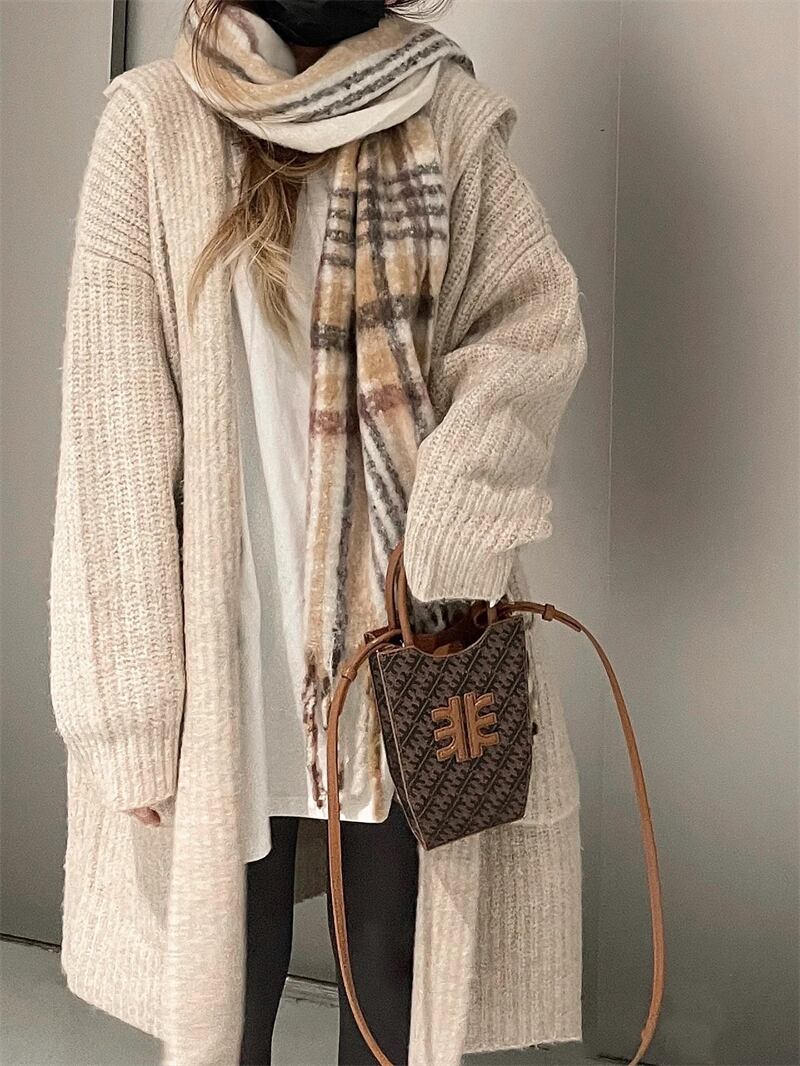 ルーズフードセーター コート オータムニットカーディガントップス 秋物 10/5 秋冬 オータム ウインター ナチュラル mi4629172766830