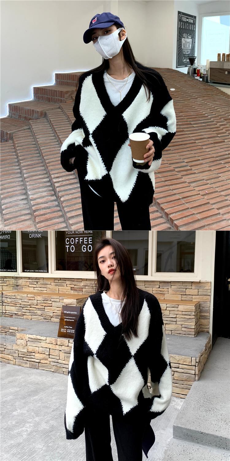 スタイルカラーVネックセーター オータムルーズニットトップス 秋物 10/5 秋冬 オータム ウインター ナチュラル mi4693501935860