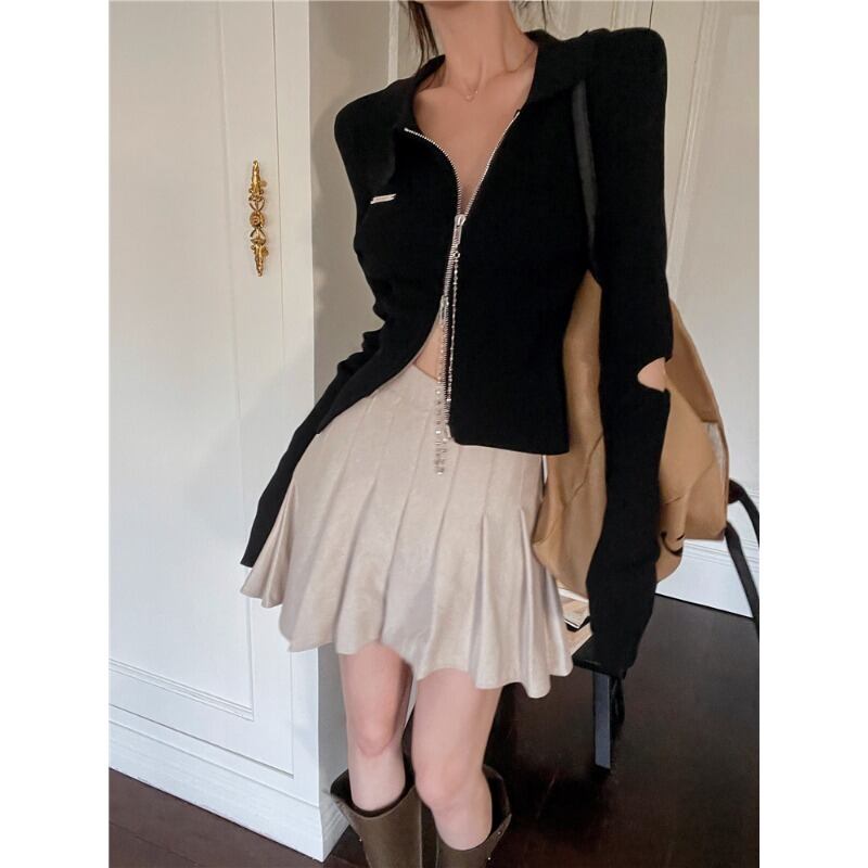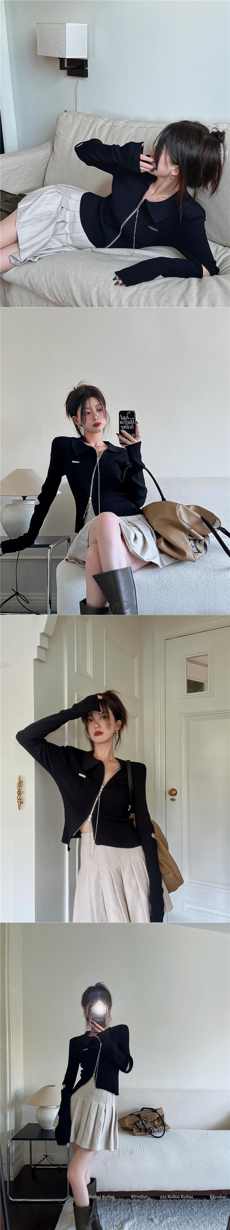 ジッパーショートニットセーター オータムスリムカーディガントップス 秋物 10/5 秋冬 オータム ウインター ナチュラル mi4614738139681