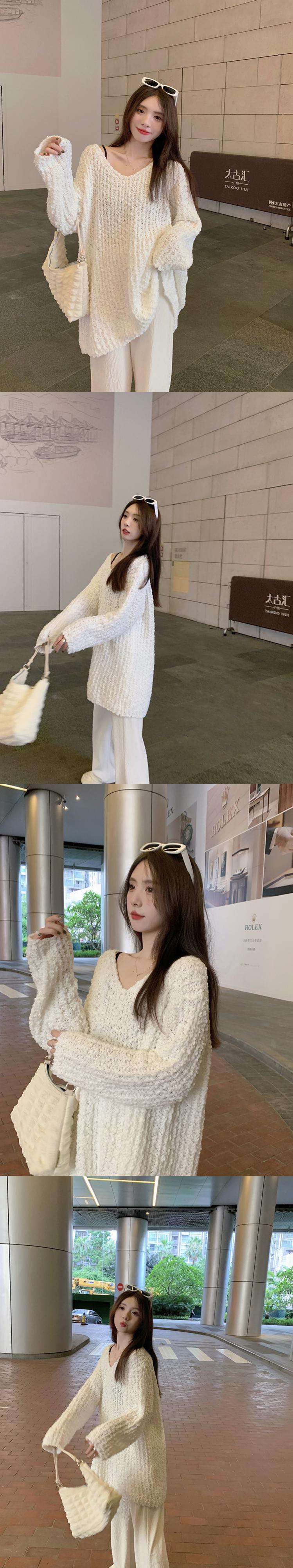 ルーズVネックプルオーバー セーター オータムニットトップス 秋物 10/5 秋冬 オータム ウインター ナチュラル mi4653736190933
