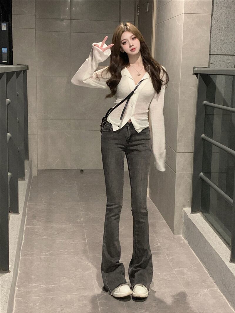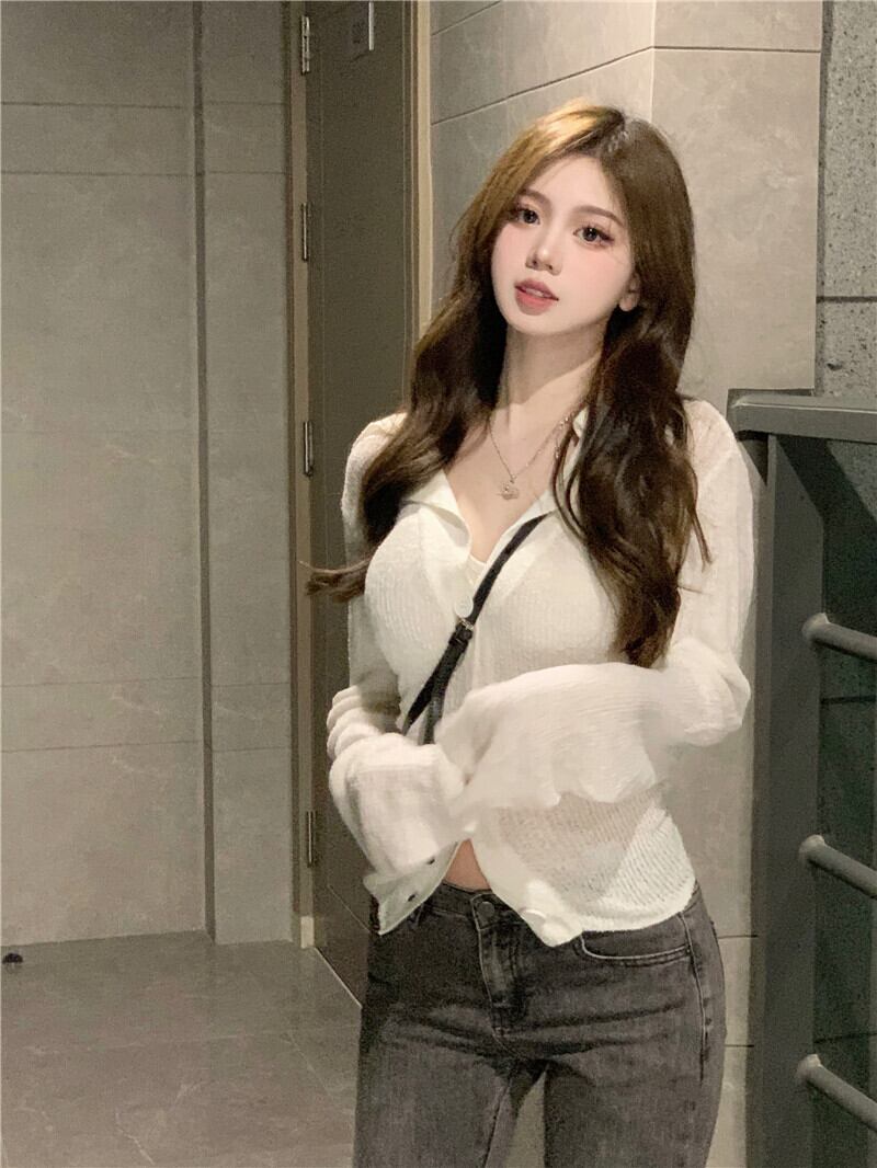 スタイルホワイトニットカーディガンオータムスリムフィット薄手ショートトップス 秋物 10/5 秋冬 オータム ウインター ナチュラル mi4636894673039