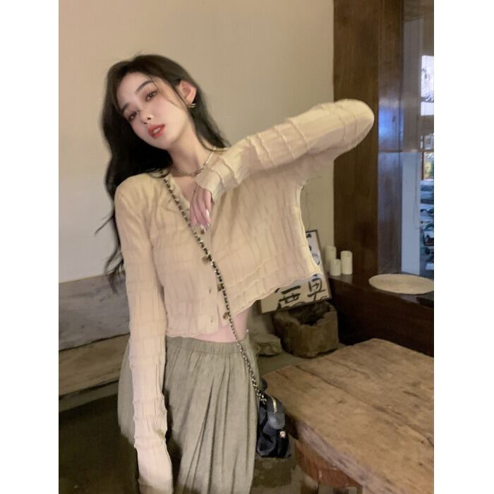 カーディガン薄手コート オータムスリムショートトップス レッド 秋物 10/5 秋冬 オータム ウインター ナチュラル mi4682603392605