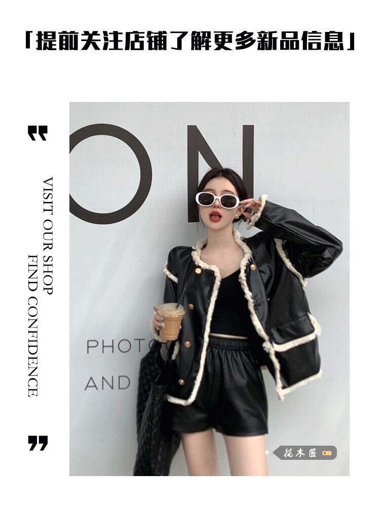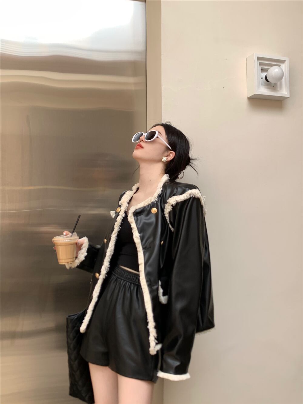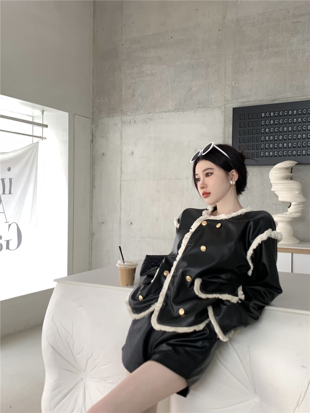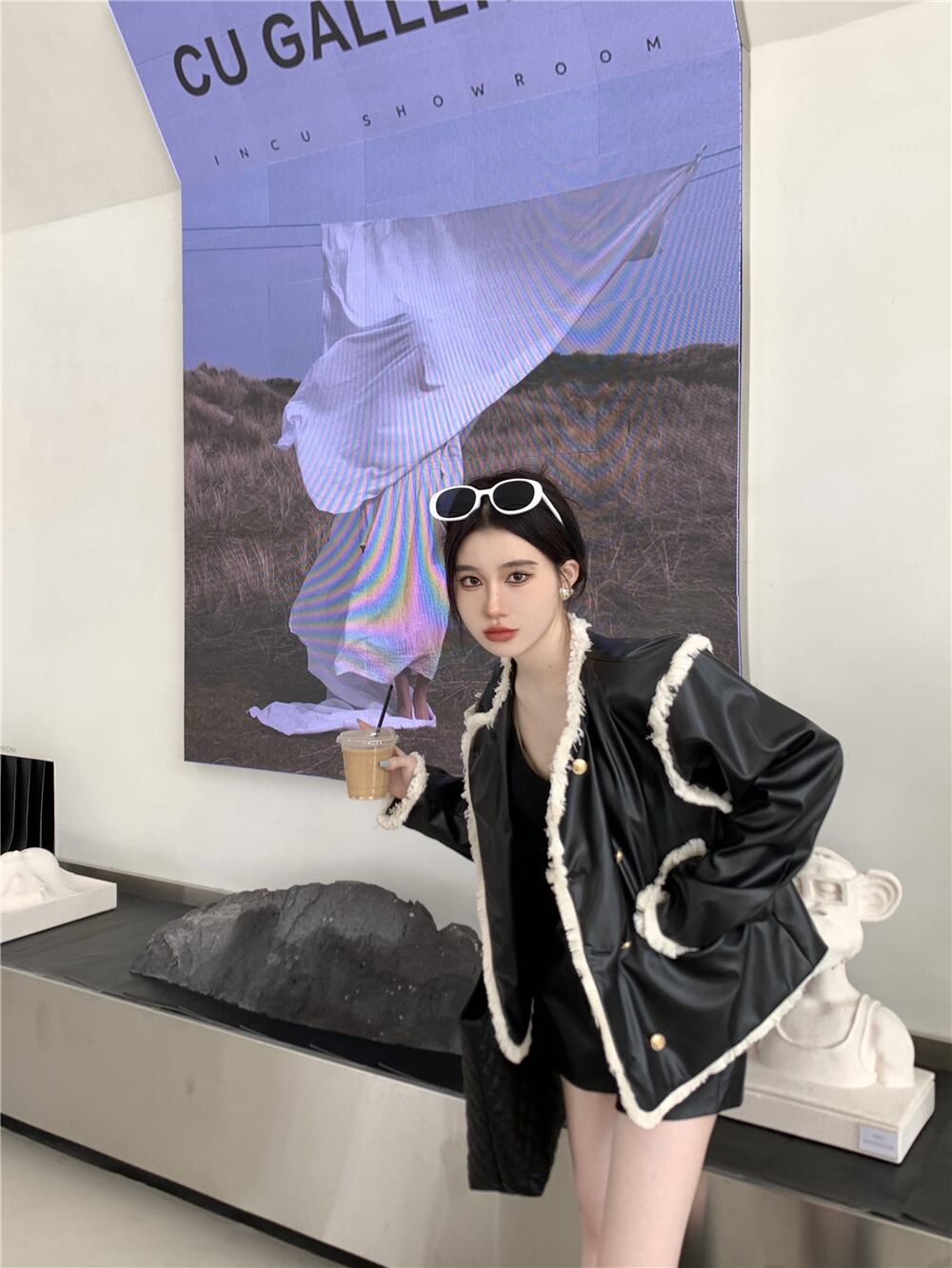 スタンダードレザージャケット コート オータムダブルブレストトップス レトロ ストリート 秋物 ステッチ 10/5 秋冬 オータム ウインター ナチュラル mi4615376913402