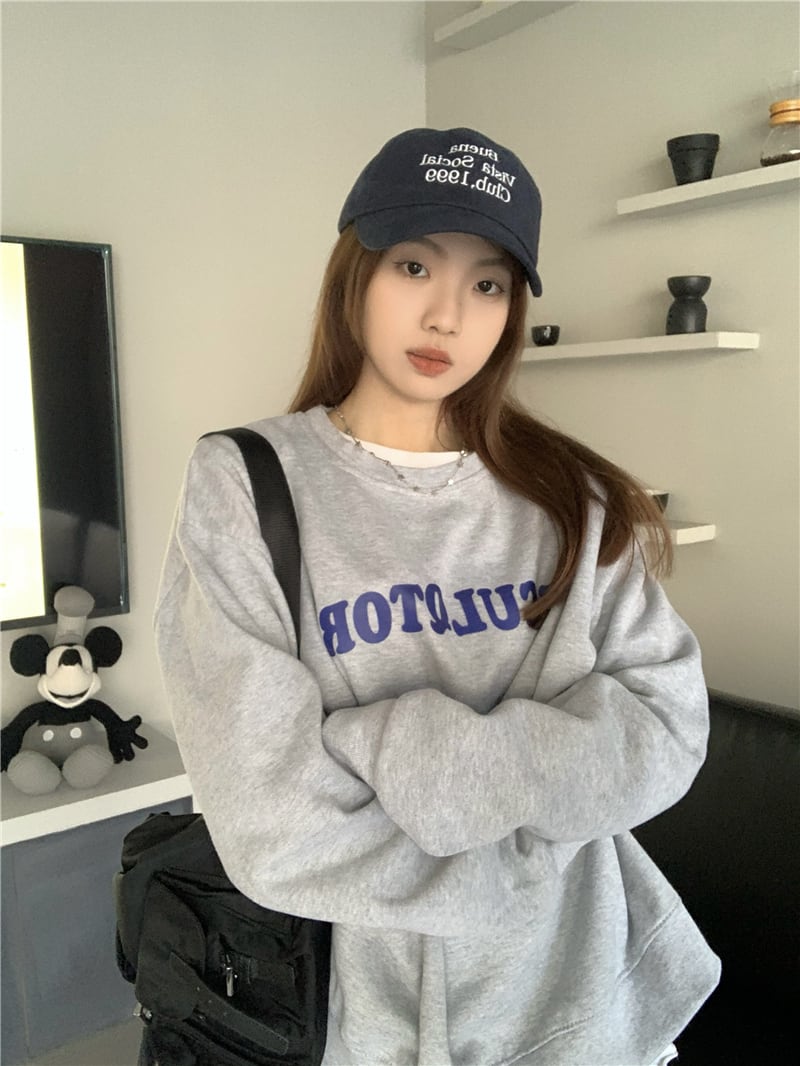 スタンダードルーズラウンドネックプルオーバー セーター オータムウィンターベルベットトップス レトロ 秋物 冬物 Oネック 10/5 秋冬 オータム ウインター ナチュラル mi4637643404872