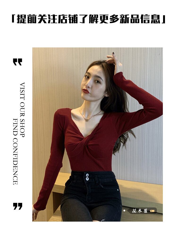 スリムフィット薄手クロスVネックセーター オータムシャツ トップス ロング 秋物 10/5 秋冬 オータム ウインター ナチュラル mi4687839582617