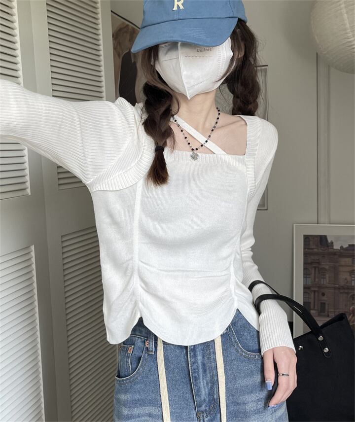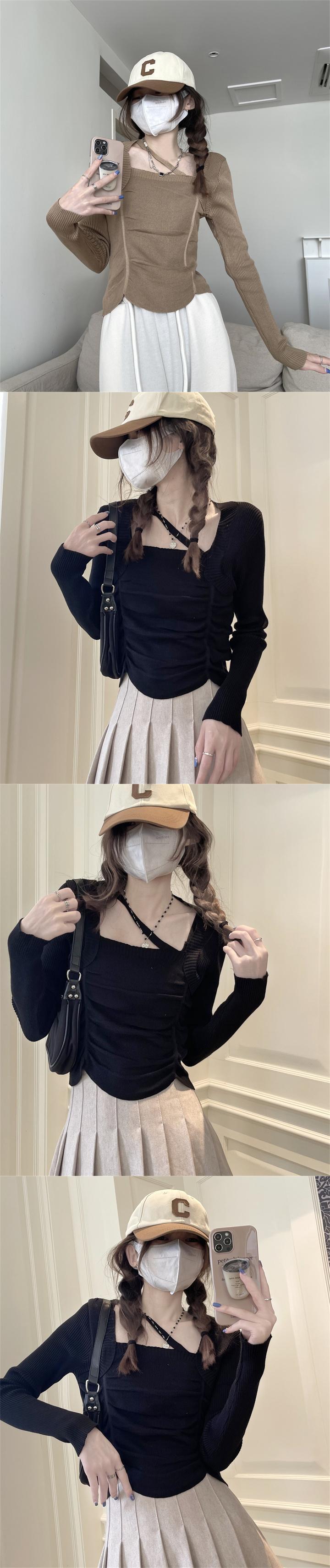 プリーツニットセーター オータムスリムトップス ロング 秋物 10/5 秋冬 オータム ウインター ナチュラル mi4676645280350