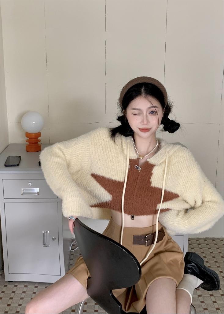 プリント柄フードセーター コート オータムショートニットカーディガントップス 秋物 10/5 秋冬 オータム ウインター ナチュラル mi4636888734602