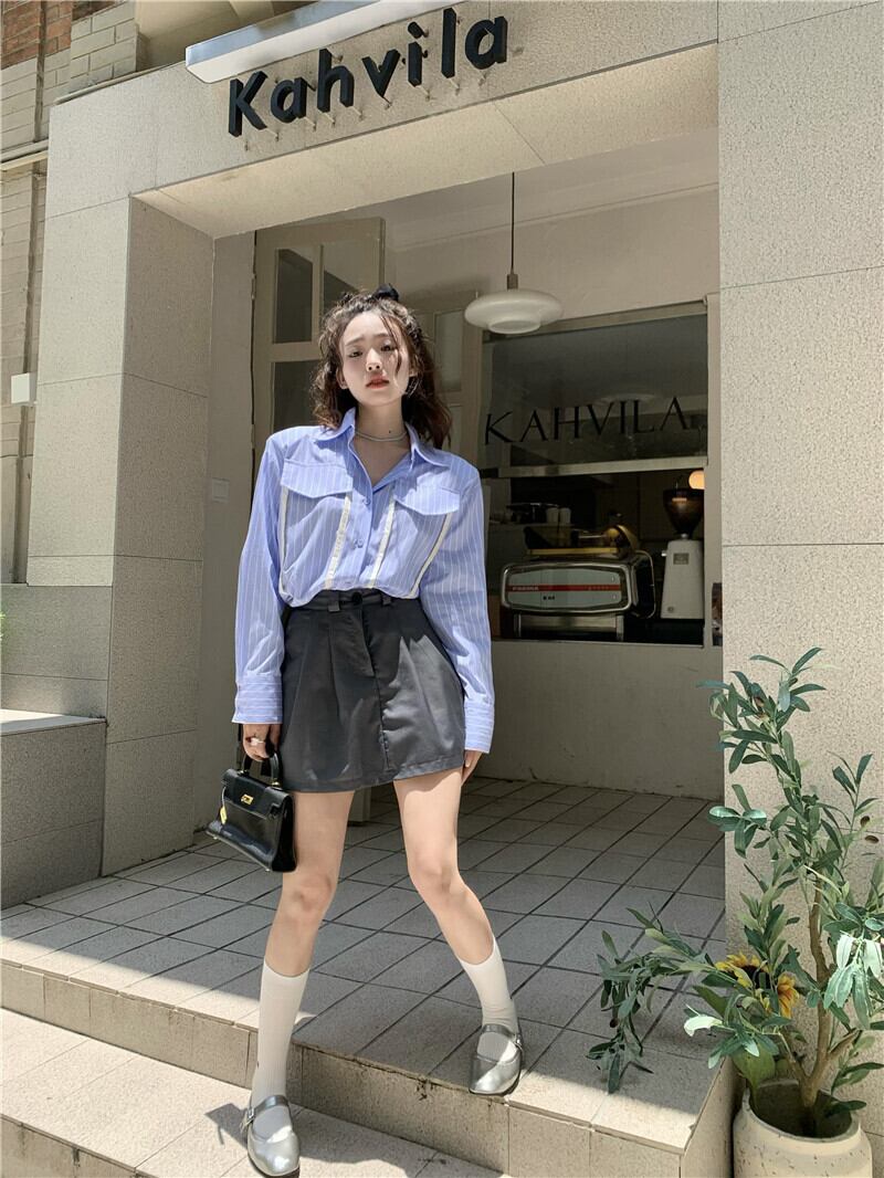 ストライプシャツ オータムルーズ薄手トップス 秋物 10/5 秋冬 オータム ウインター ナチュラル mi4615683375790