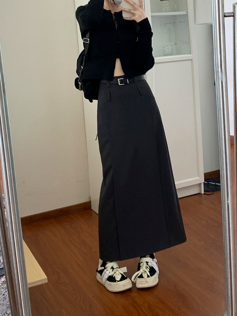 スタンダードスカート オータムハイウェストスリム レトロ 秋物 10/5 秋冬 オータム ウインター ナチュラル mi4619564519521