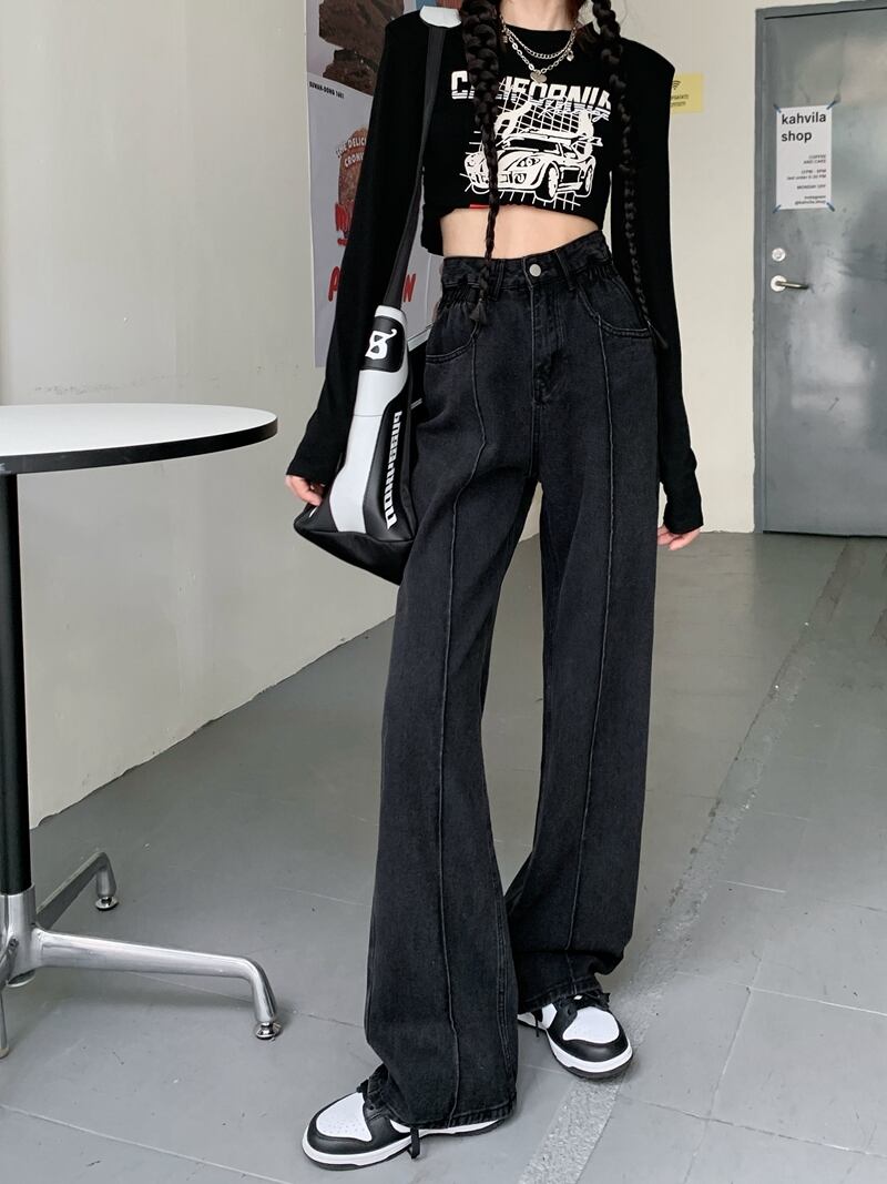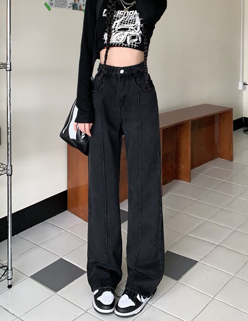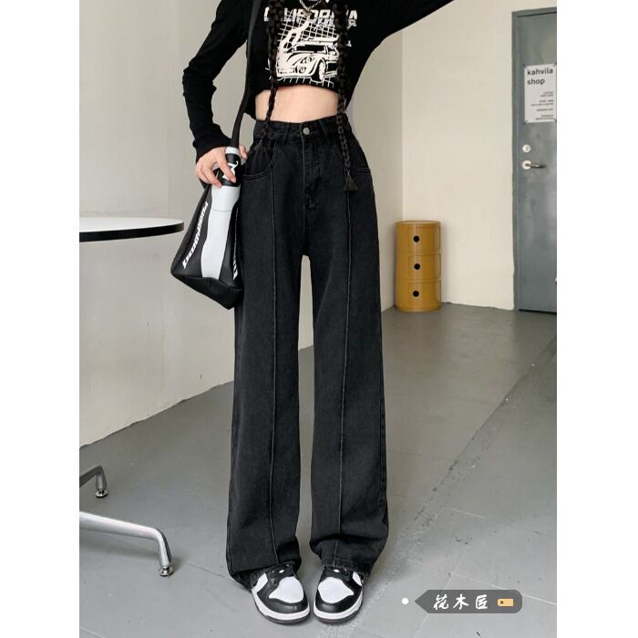 ブラックハイウェストスリムジーンズ オータムルーズパンツ 秋物 10/5 秋冬 オータム ウインター ナチュラル mi462402914867