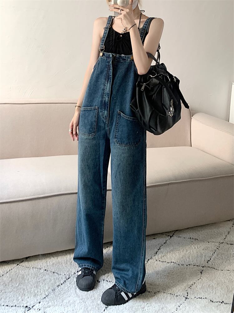 スタンダードオーバーオール オータムハイウェスト薄手ワンピースパンツ レトロ 秋物 10/5 秋冬 オータム ウインター ナチュラル mi4616929033007