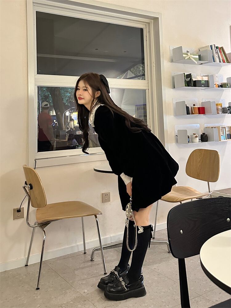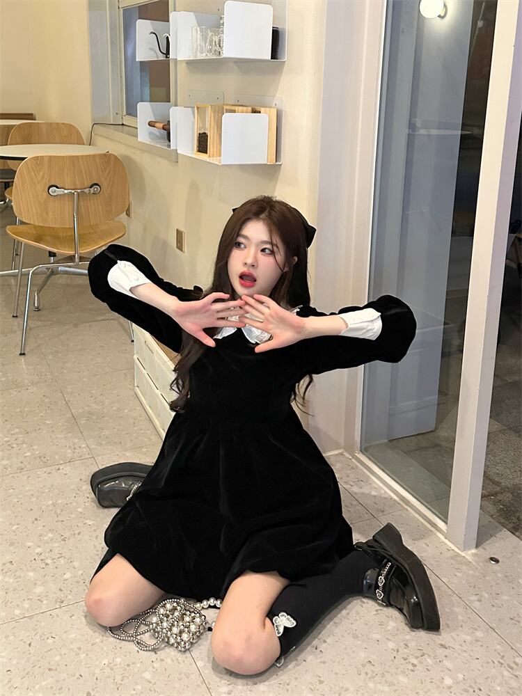 ブラックベルベットカラードレス オータムスタンダード ロング レトロ 秋物 10/5 秋冬 オータム ウインター ナチュラル mi4646410617840
