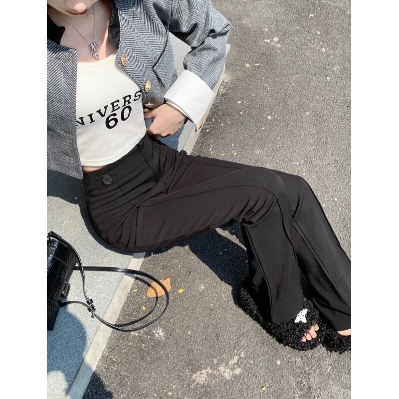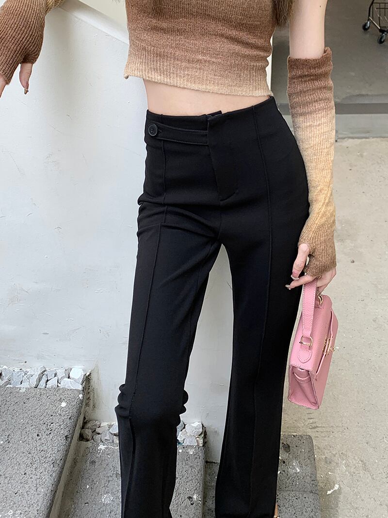 ブラックハイウェストウェストストレッチスリムカジュアルパンツ オータム エラスティック 伸縮 秋物 10/5 秋冬 オータム ウインター ナチュラル mi462695972357