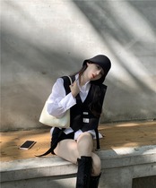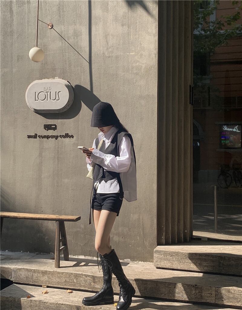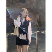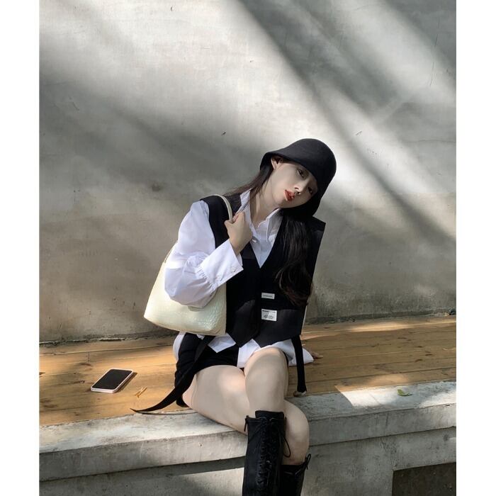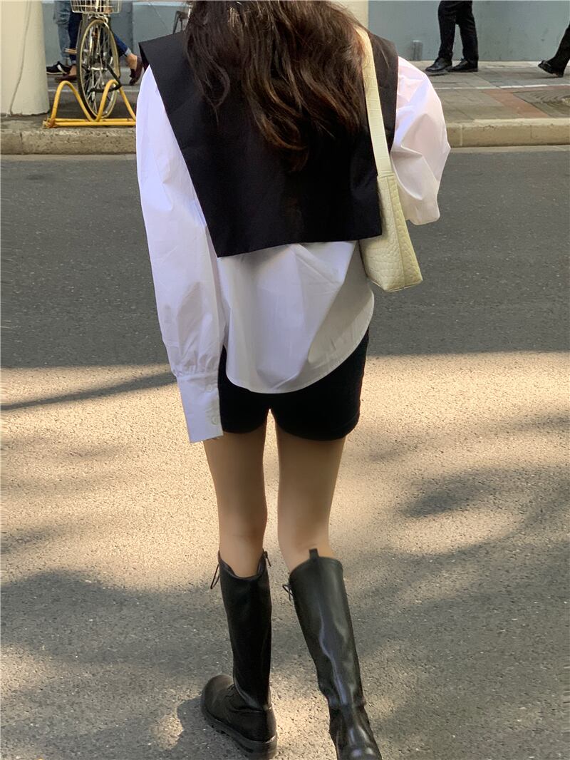 オータムブラックVネックホワイトシャツ ストリート 秋物 10/5 秋冬 オータム ウインター ナチュラル mi4693446634581