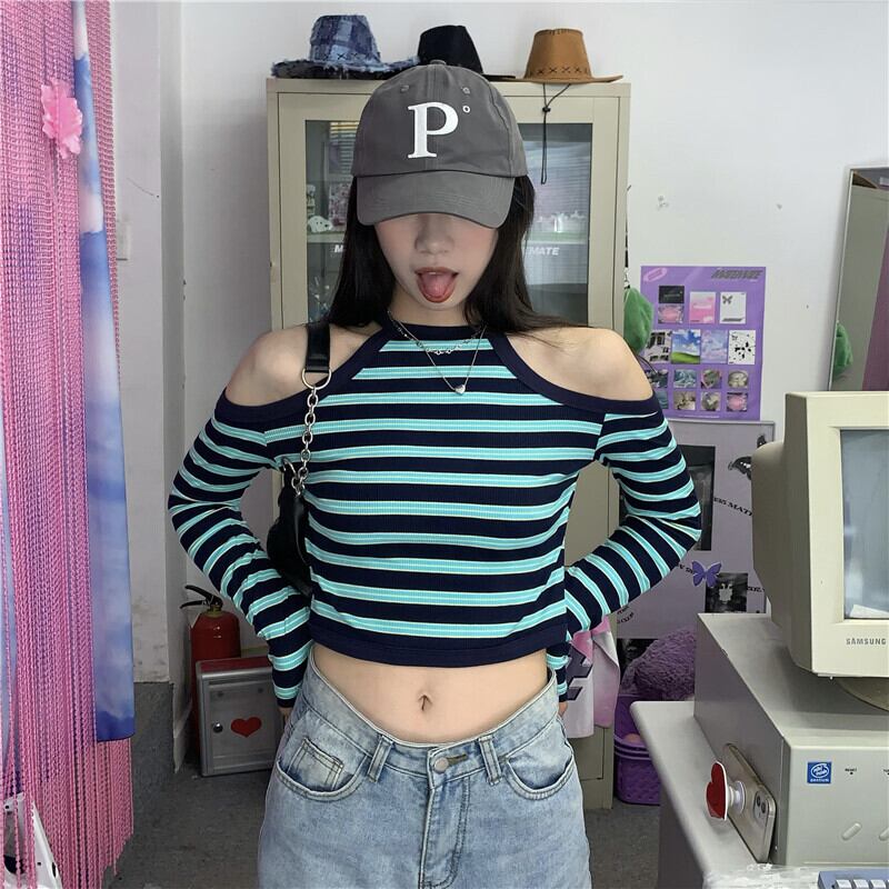 ストライプTシャツ オータムスリムショートトップス ロング 秋物 10/5 秋冬 オータム ウインター ナチュラル mi4693792027698