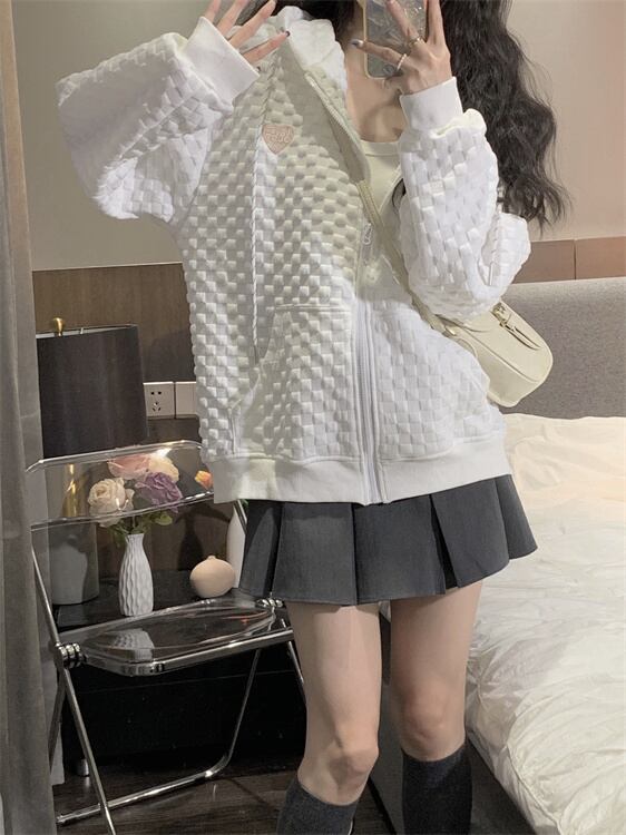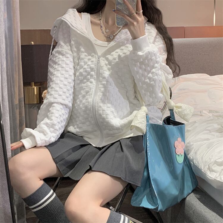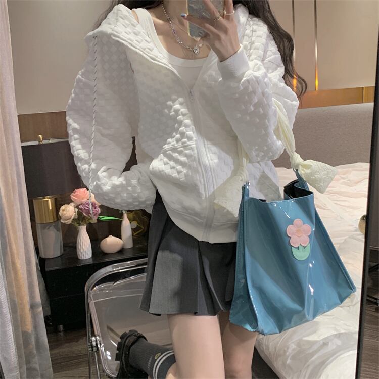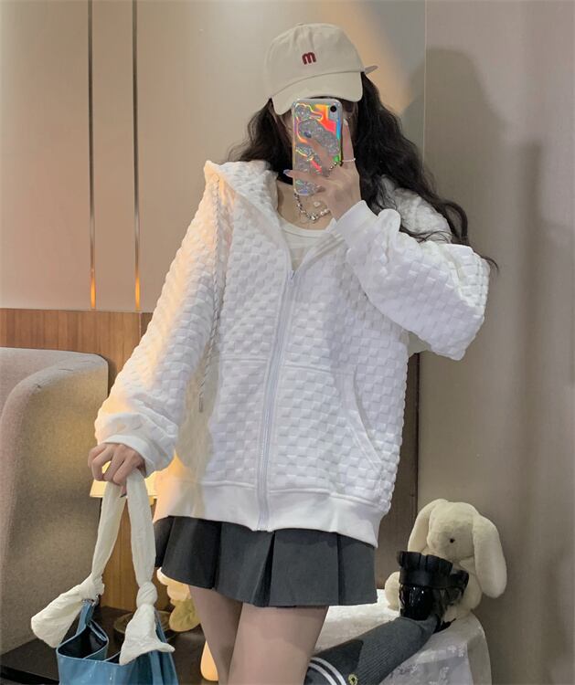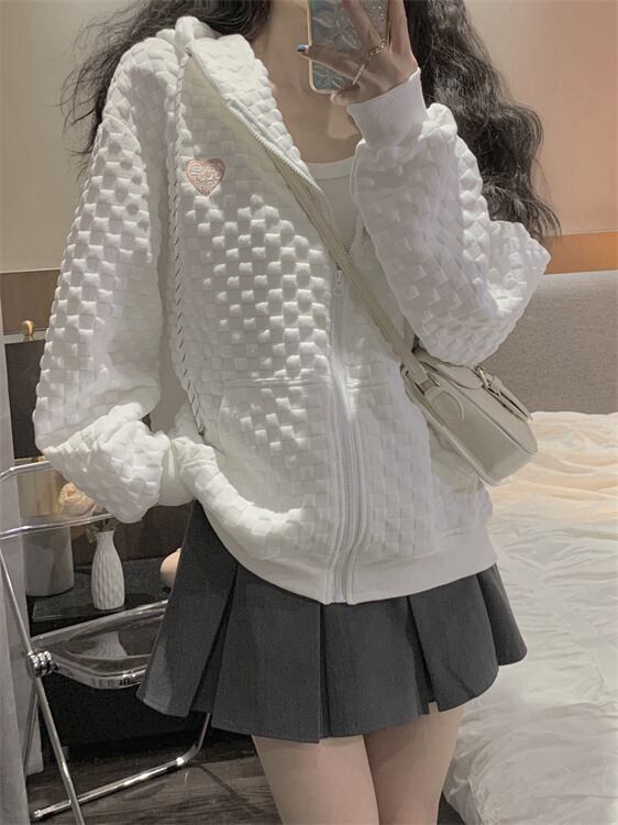 スタイルホワイトフードジャケット オータムルーズトップス 秋物 10/5 秋冬 オータム ウインター ナチュラル mi4613803848411