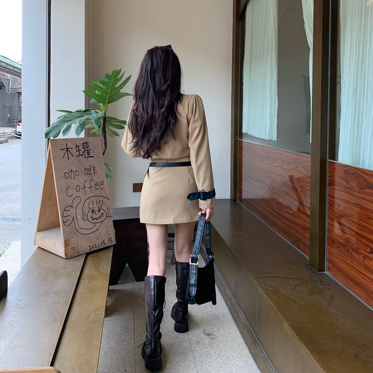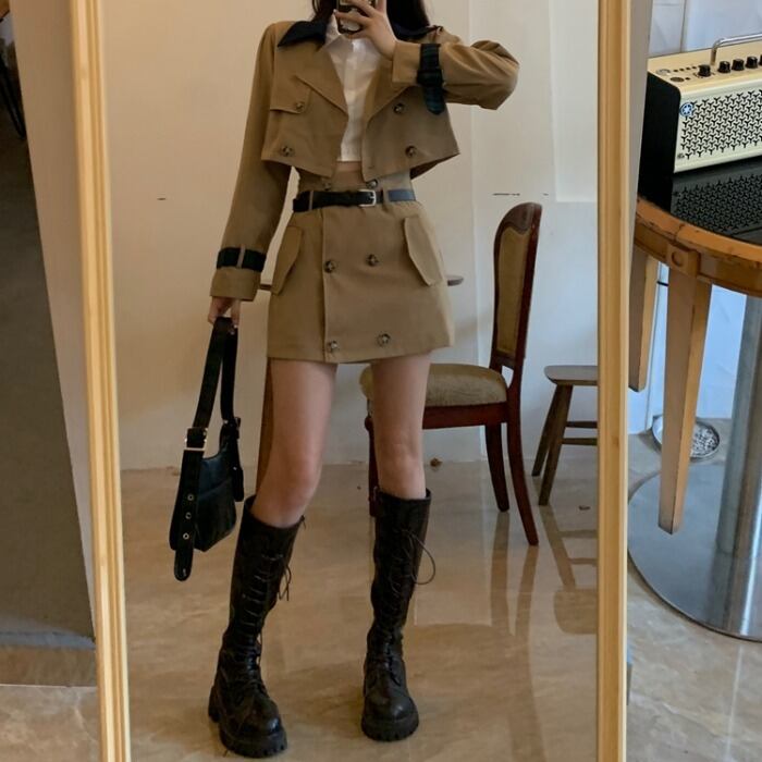 色:白いシャツワンピース,スカート+ベルト,ジャケット一枚