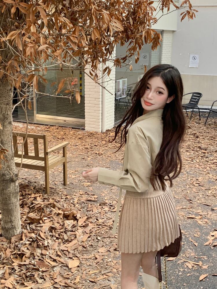 色:ワンピースアプリコットシャツ,カーキ色のスカート