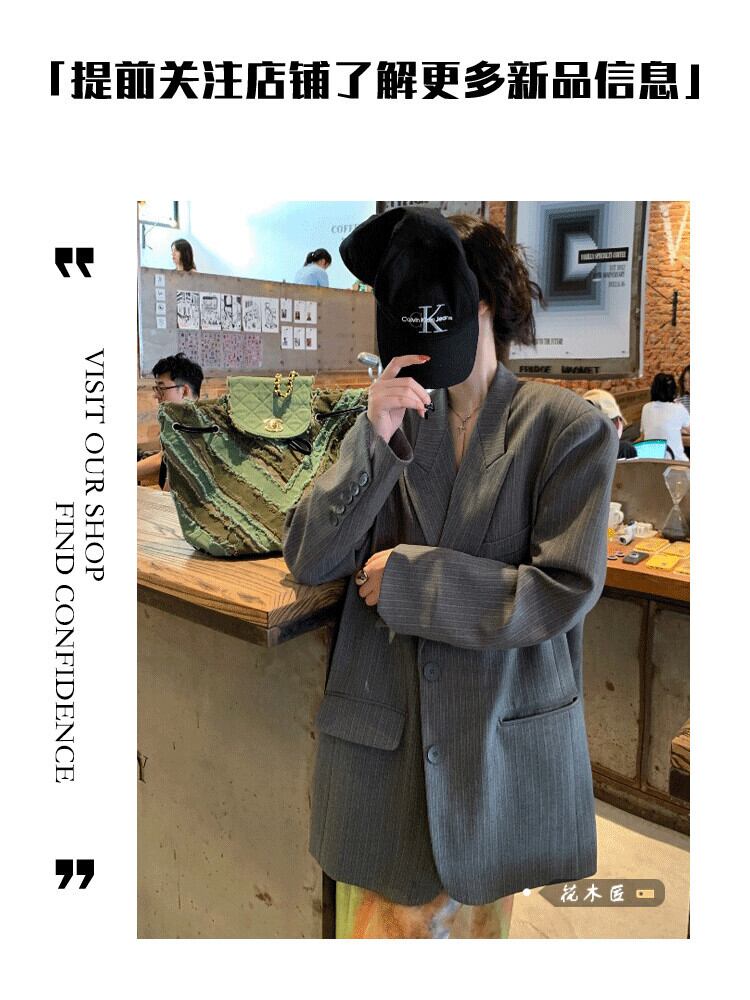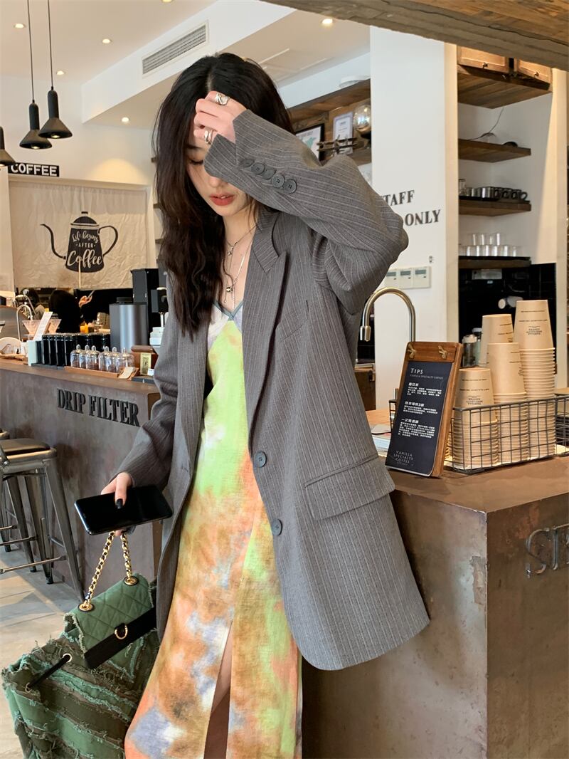 スタンダードストライプジャケット オータムウィンターカジュアル ロング レトロ 秋物 冬物 10/5 秋冬 オータム ウインター ナチュラル mi4634879546962