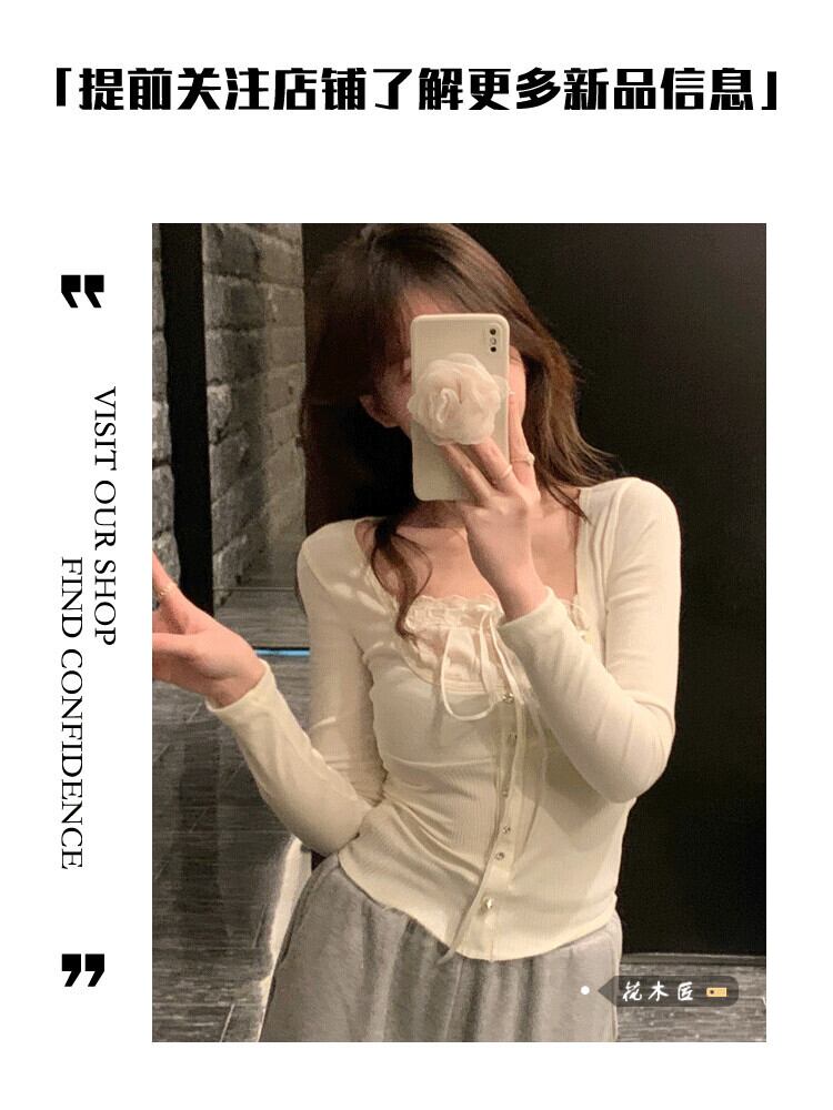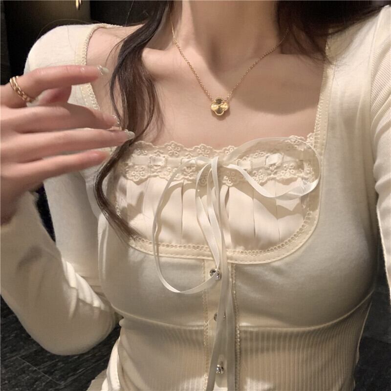 レースTシャツ オータムカラースリムトップス ロング 秋物 スクウェア 10/5 秋冬 オータム ウインター ナチュラル mi4624184746915