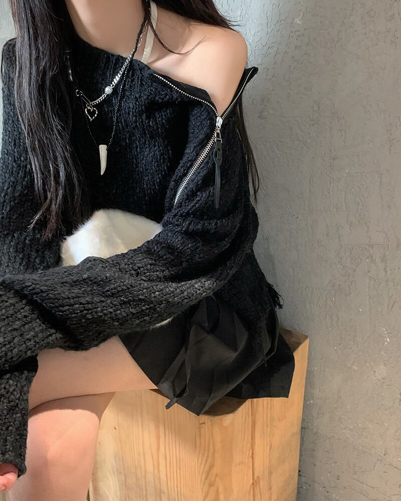 ジッパーセーター オータムルーズプルオーバー ロング 秋物 10/5 秋冬 オータム ウインター ナチュラル mi4652791879449