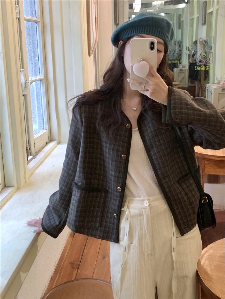 スタイルカラーショート格子柄コート オータムルーズトップス 秋物 10/5 秋冬 オータム ウインター ナチュラル mi4643494266240