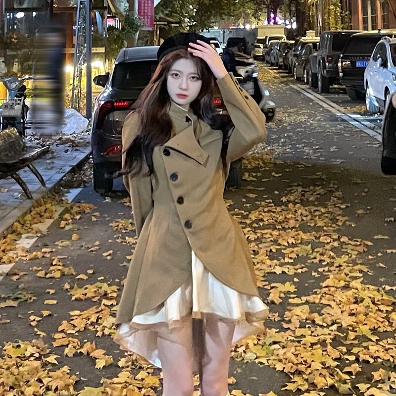 スタンダードコート オータムウェスト薄手 ロング レトロ 秋物 ステッチ 10/5 秋冬 オータム ウインター ナチュラル mi464446482645