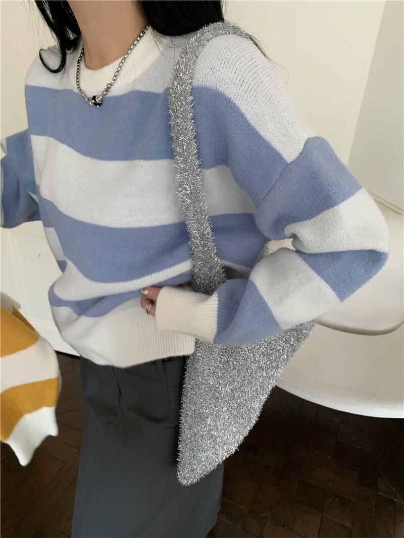 スタイルカラーストライププルオーバー セーター オータムルーズニットトップス 秋物 10/5 秋冬 オータム ウインター ナチュラル mi4692234946783