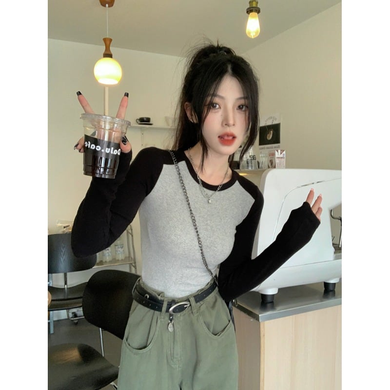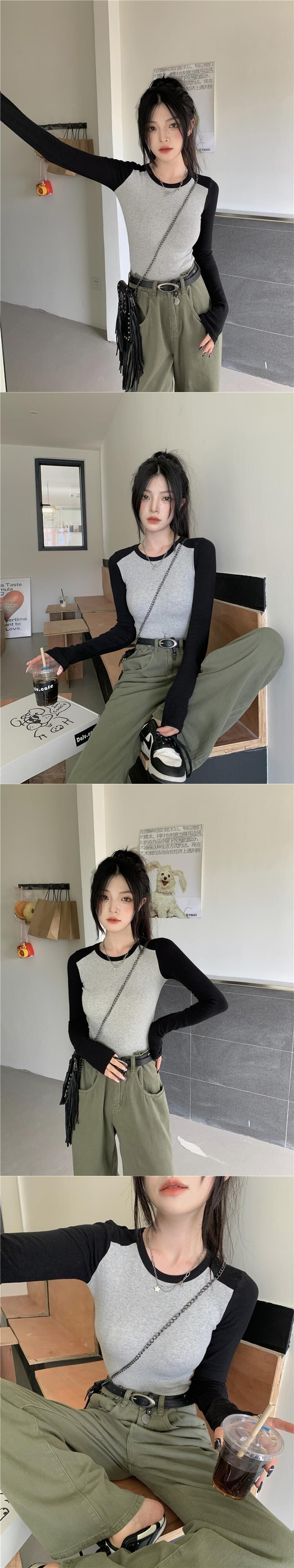 スタイルカラースリムショートラウンドネックTシャツ シャツ オータム薄手トップス ロング 秋物 Oネック 10/5 秋冬 オータム ウインター ナチュラル mi4666456610482