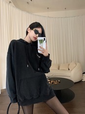 スタンダードグレーフードセーター オータムルーズトップス レトロ 秋物 10/5 秋冬 オータム ウインター ナチュラル mi4691229859178