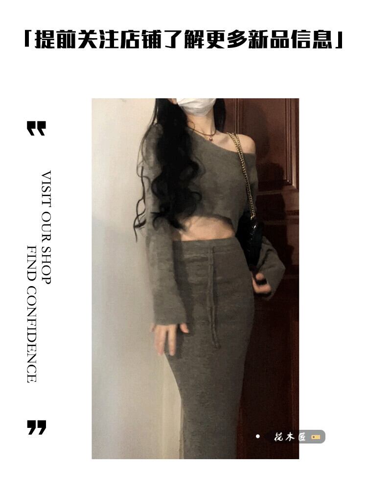 ニットオータムトップス ハイウェストウェストアームスカート セット 秋物 10/5 秋冬 オータム ウインター ナチュラル mi465140944413