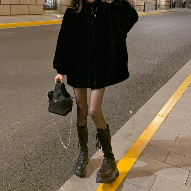 スタンダードブラックファーコート オータムウィンタールーズ薄手カーディガン レトロ 秋物 冬物 10/5 秋冬 オータム ウインター ナチュラル mi4629194741641