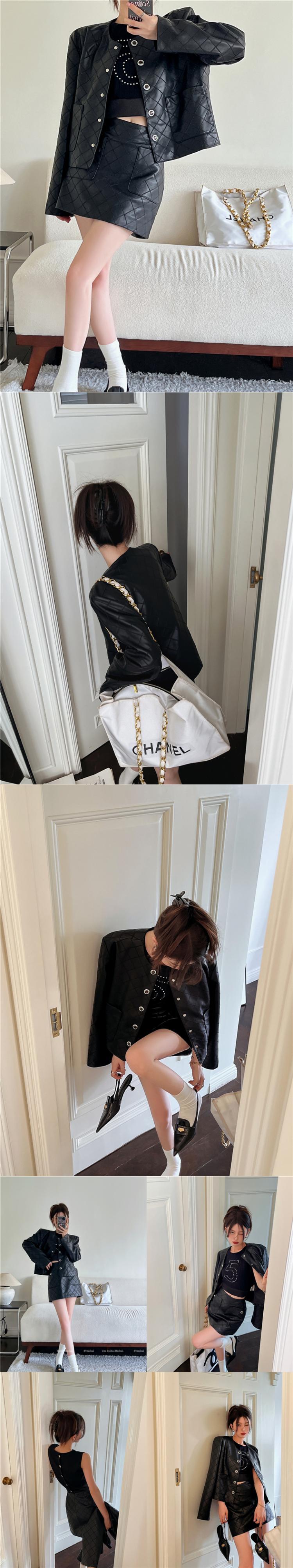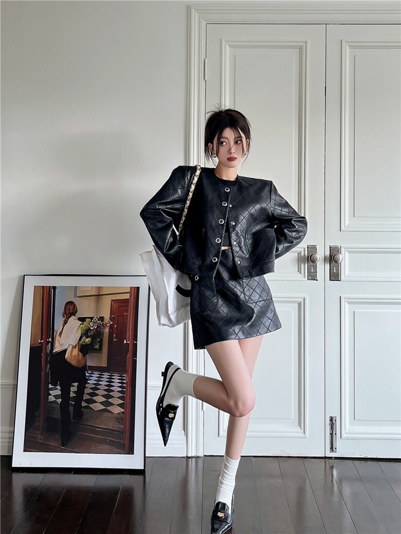 オータムレザージャケット ハイウェストウェストスカート セット 秋物 10/5 秋冬 オータム ウインター ナチュラル mi465646092663
