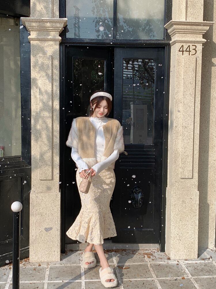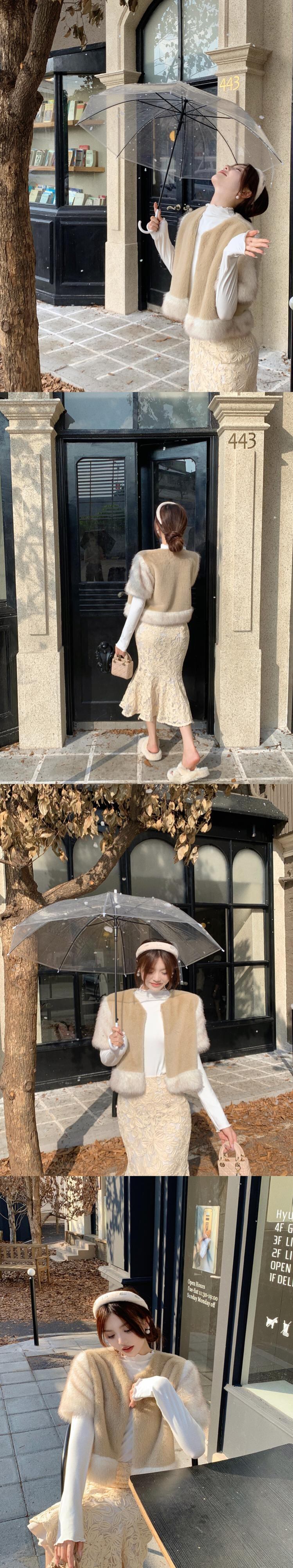 スタンダードファーコート オータムウィンターショートルーズカーディガン半袖スリーブ レトロ ハーフスリーブ 秋物 冬物 ステッチ 10/5 秋冬 オータム ウインター ナチュラル mi462693000635