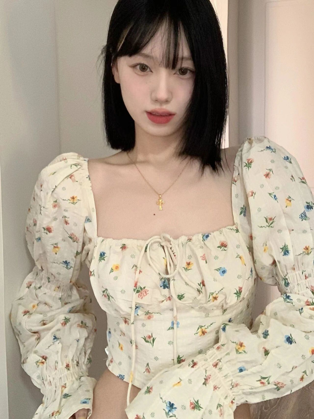 フローラルシャツ オータムカラースリムフィット薄手トップス ロング 大人ガーリー スウィート キュート カジュアル 秋物 花柄 ピュア スクウェア 10/5 秋冬 オータム ウインター ナチュラル mi4668086028867