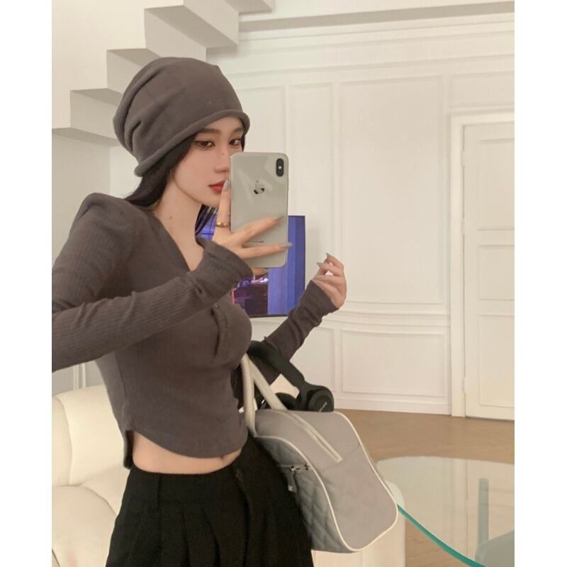 VネックTシャツ シャツ オータムスリムショートトップス ロング 秋物 10/5 秋冬 オータム ウインター ナチュラル mi4657688691093