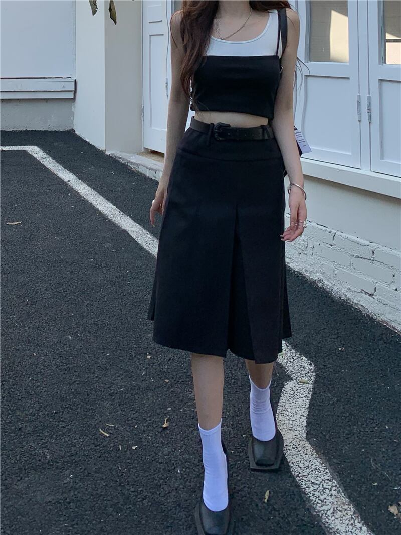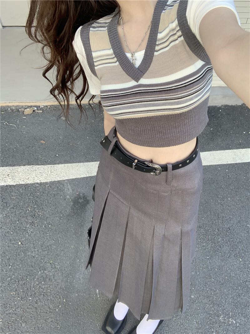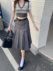 スタンダードスカート サマーハイウェストウェスト薄手ルーズプリーツ レトロ 夏物 10/5 秋冬 オータム ウインター ナチュラル mi4674072748090