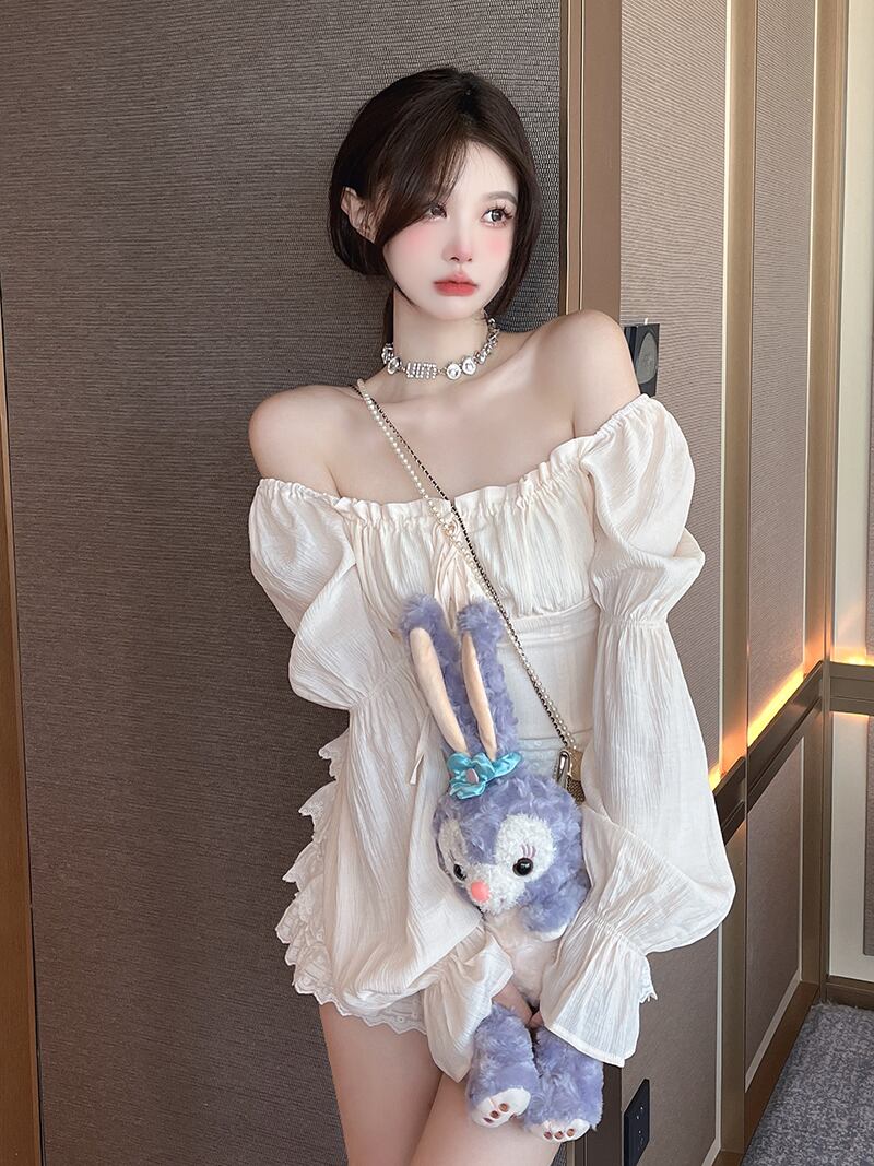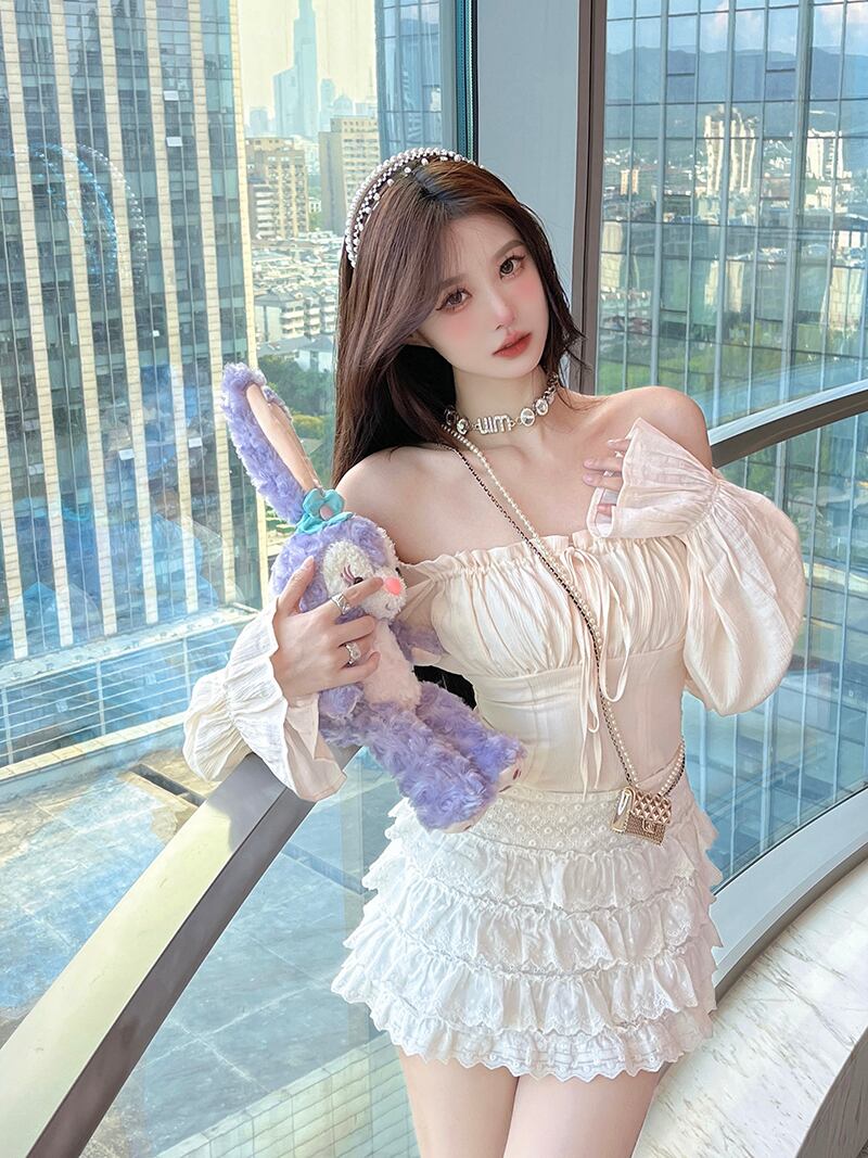 シャツ オータムプリーツショートトップス レース 秋物 レースアップ ピュア 10/5 秋冬 オータム ウインター ナチュラル mi461696605381