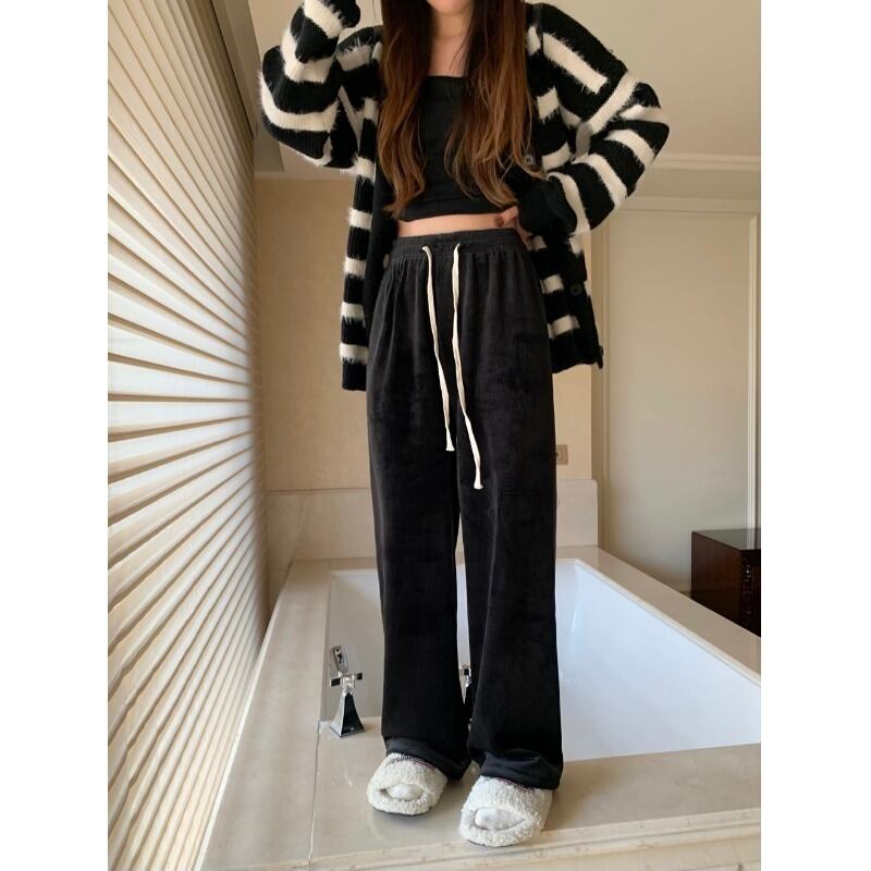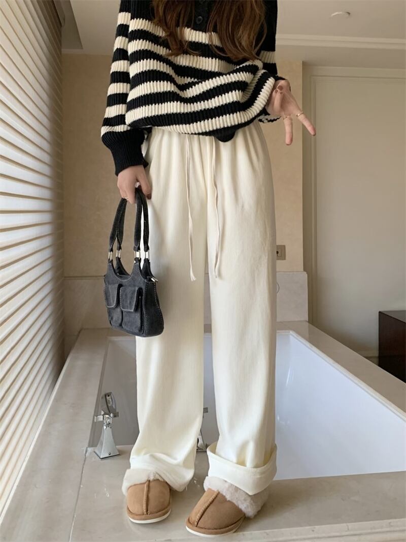 ソリッド カラーカジュアルパンツ オータムウィンタールーズ薄手ハイウェストウェストワイドレッグ 秋物 冬物 ワイドパンツ ソリッドカラー 10/5 秋冬 オータム ウインター ナチュラル mi4686332721354