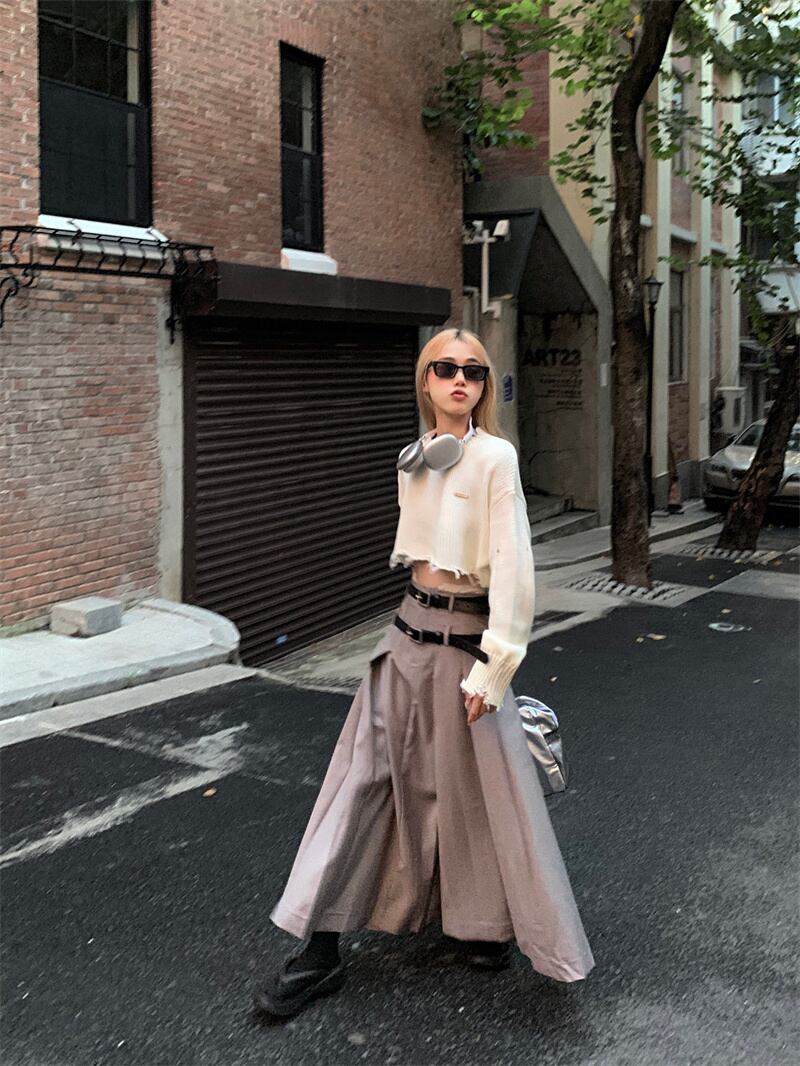 スタイルスタンダードスカート オータムハイウェストウェストルーズ薄手プリーツ レトロ 秋物 10/5 秋冬 オータム ウインター ナチュラル mi4683153563391