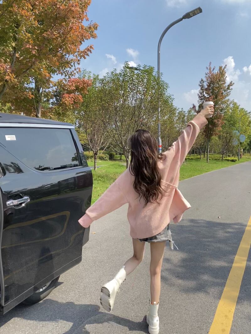 セーター ジャケット オータムルーズカーディガントップス ピンク 大人ガーリー スウィート キュート カジュアル 秋物 ステッチ 10/5 秋冬 オータム ウインター ナチュラル mi4688184339190